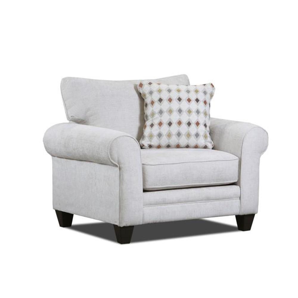 By Fusion Furniture. This chair features a rolled arm and tapered block legs. Comes with one toss pillow in Mara Patina. Special order.
