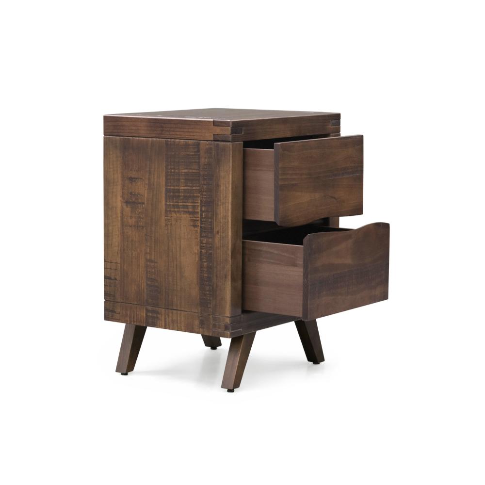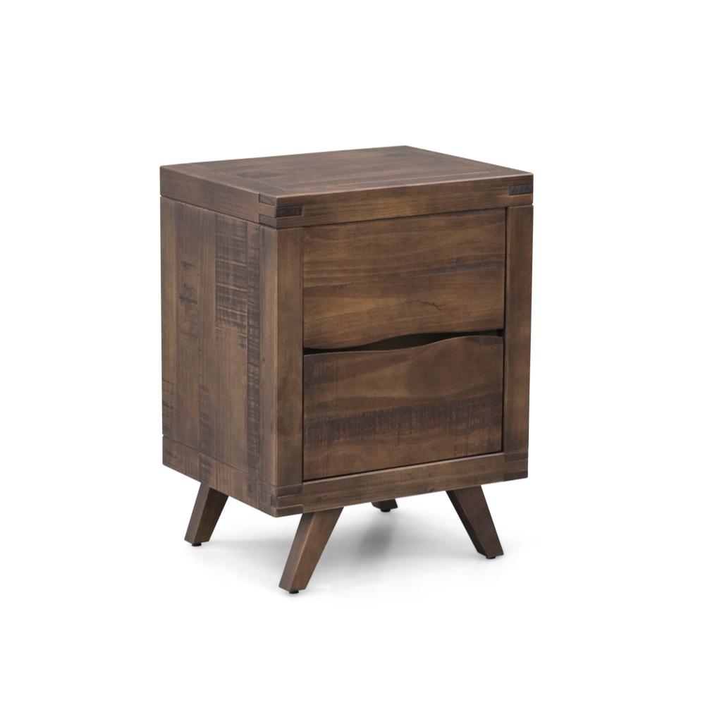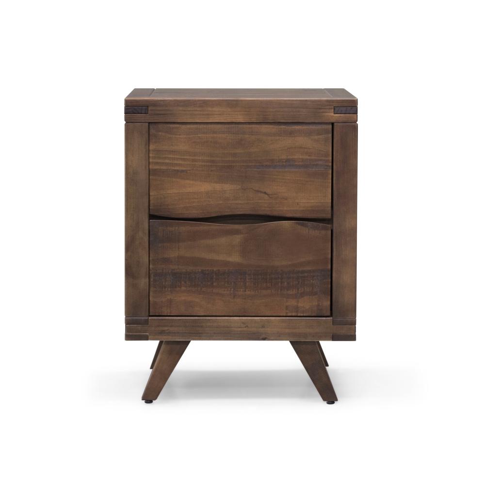 By Steve Silver. Pasco perfectly combines elements of exotic styling and contemporary design in a solid wood bedroom collection that is both modern and rustic. Drawers feature a live edge that is beautiful and functional for use as a drawer pull. Aspects of mission and mid-century modern style combine for a truly unique style. The Pasco nightstand features levelers and two drawers to store all your nighttime items Special Order.